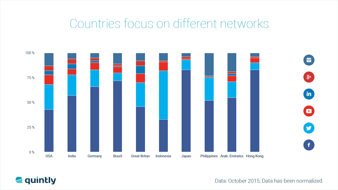 As the second step we wanted to understand how often companies and users from the specific countries are analyzing their social media efforts. Therefore we looked at the average number of days per week that users login to quintly within the months of September and October 2015.