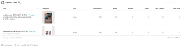 This data also shows that posts get much higher reach than stories because stories won’t appear on Instagram’s explore pages.